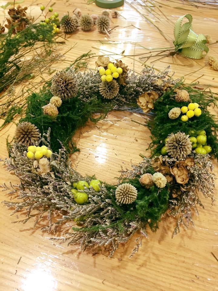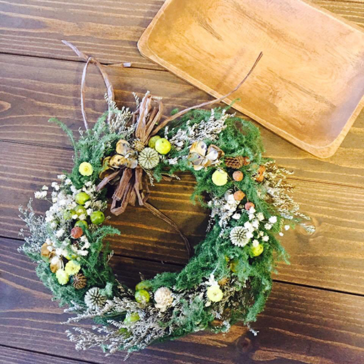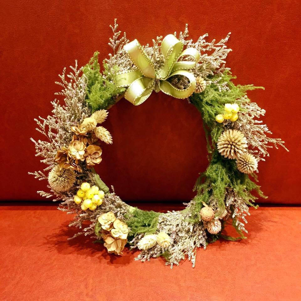 用卡斯比亞、法國蠟菊及果實、葉材纏繞而成,
